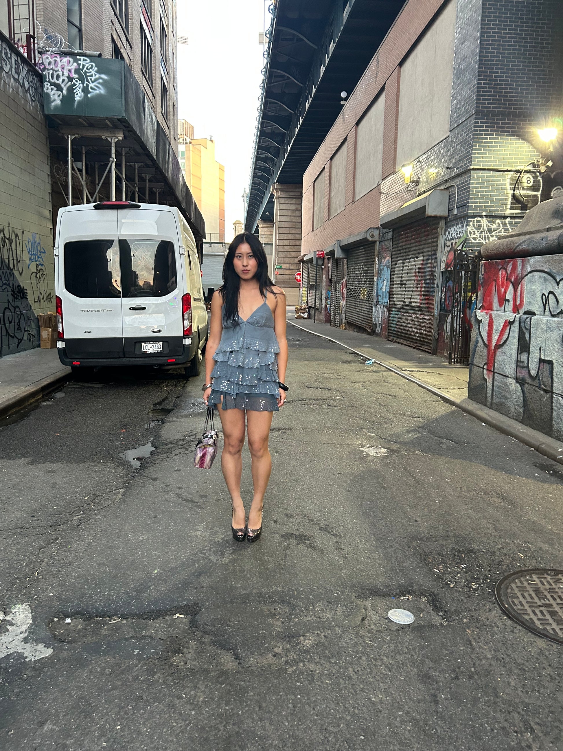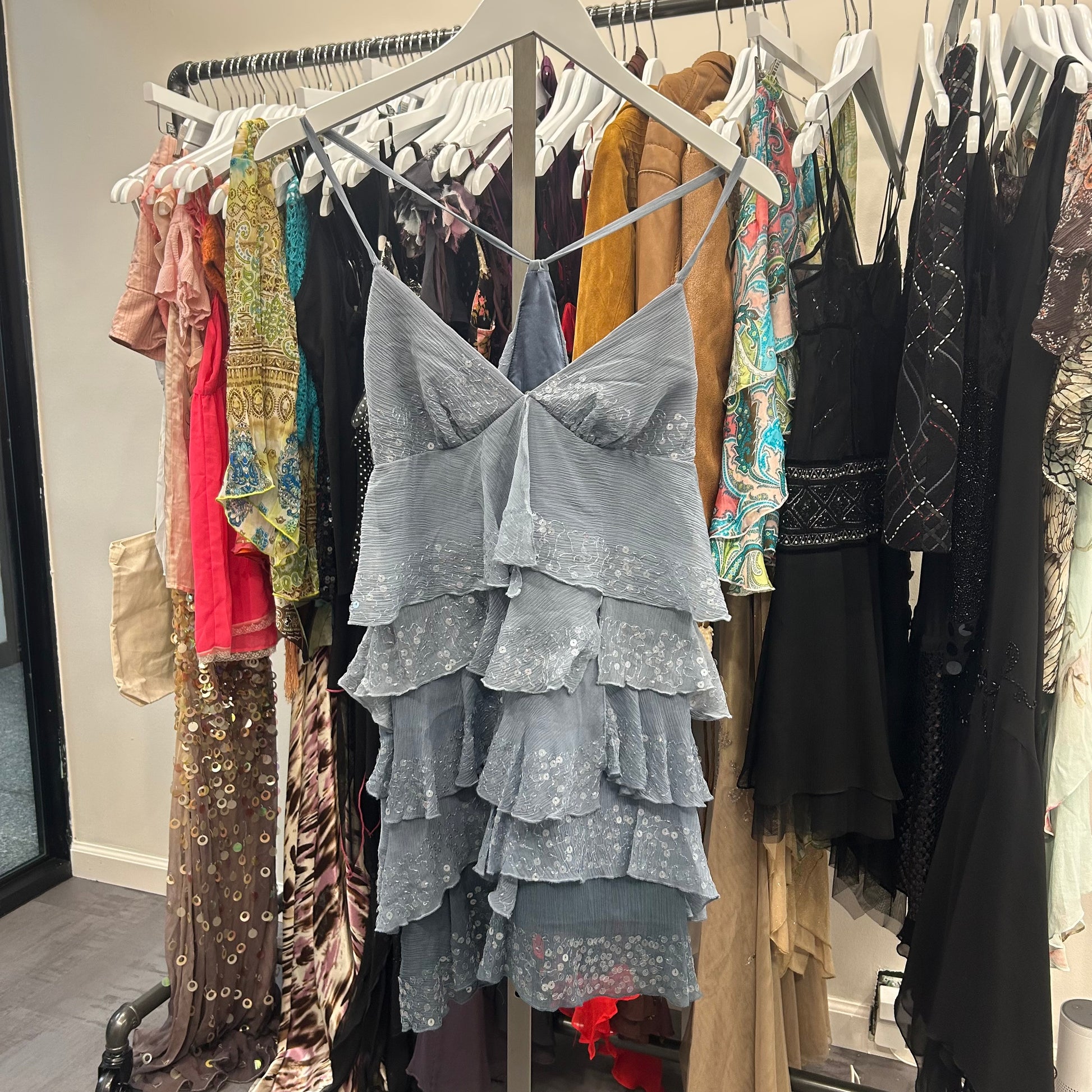 Silk Sequin Ruffle Dress