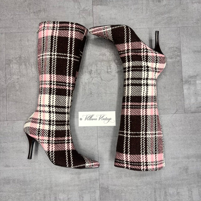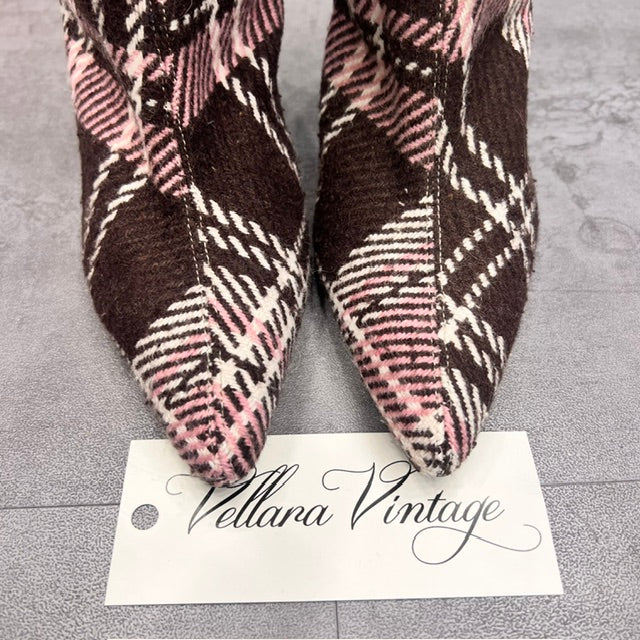 Pink and Brown Plain Pointed Toe Kitten Heel Boots