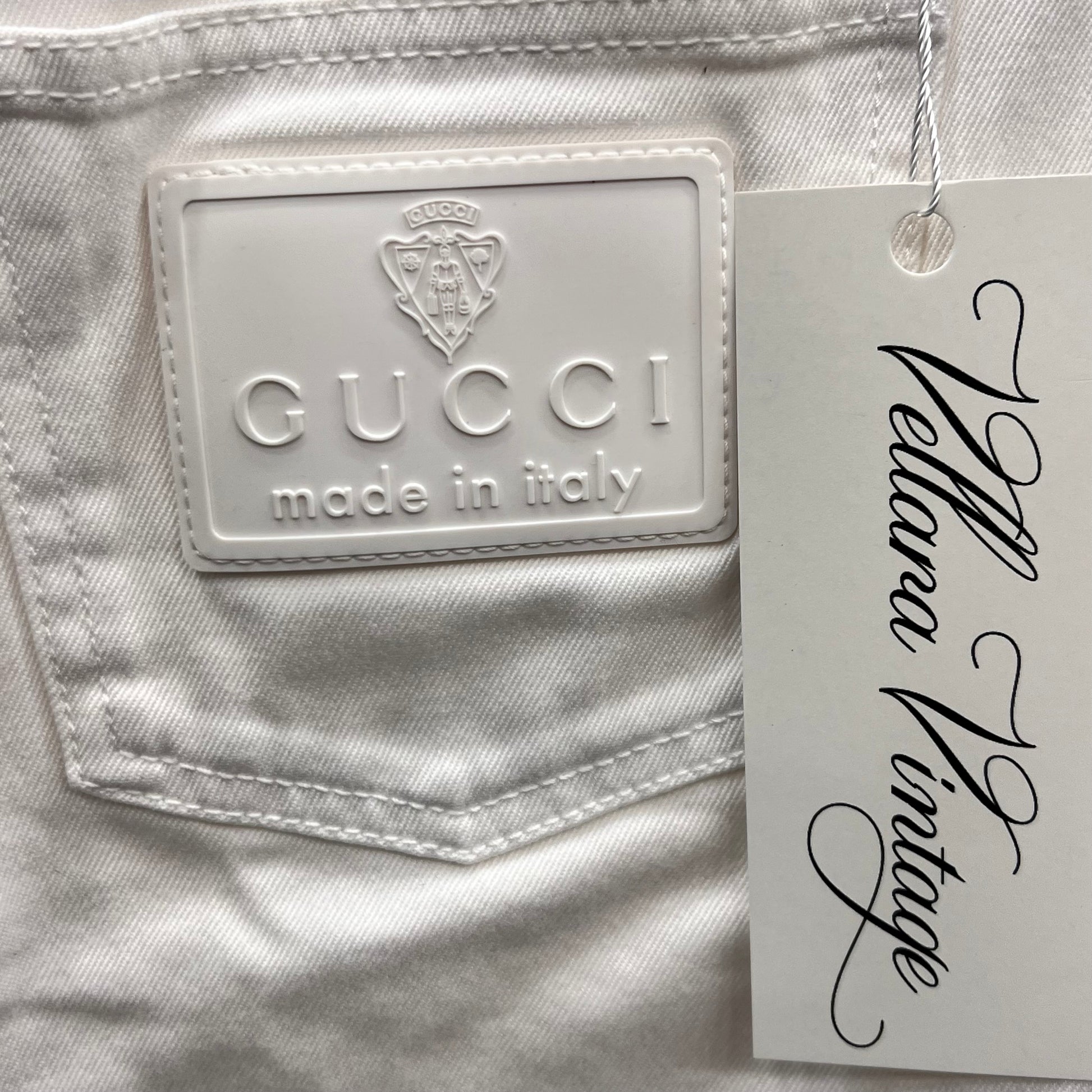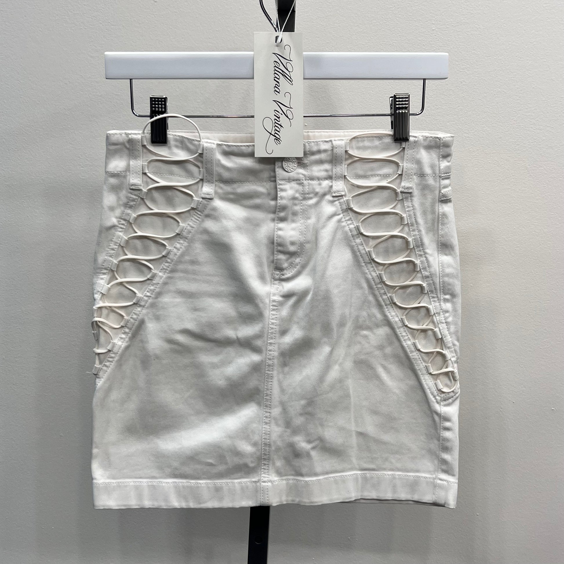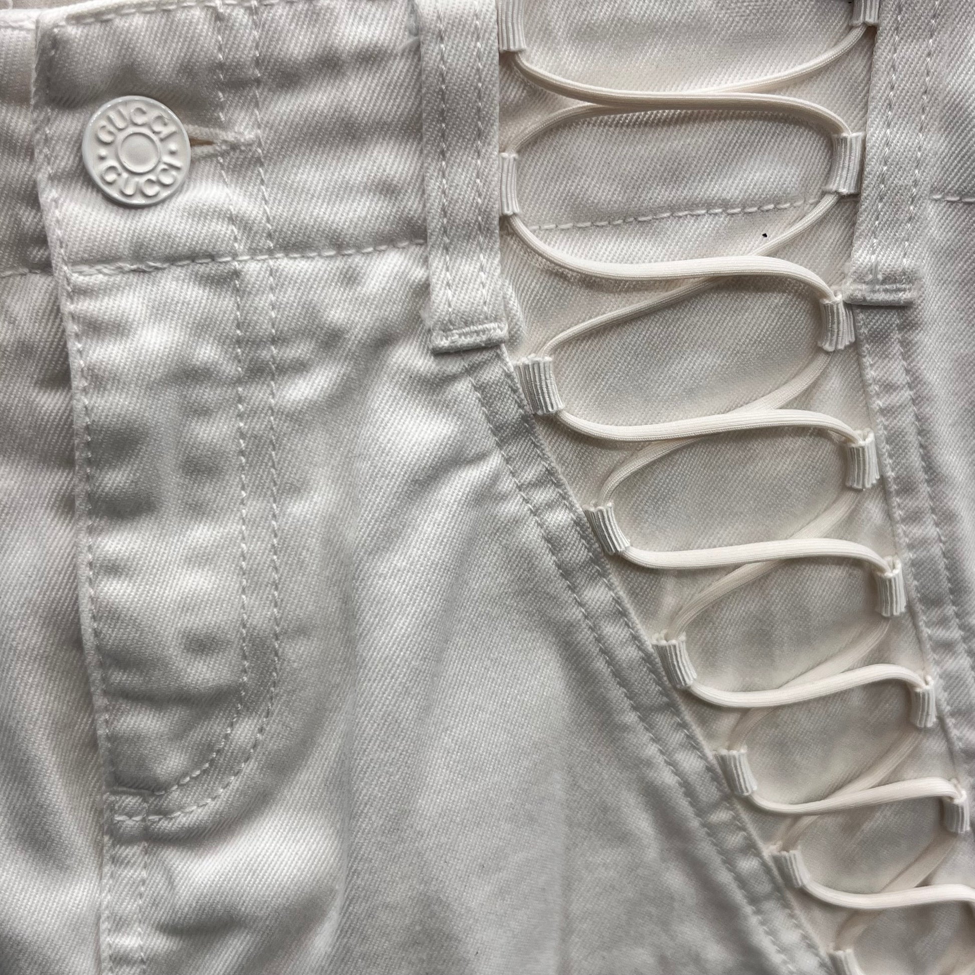 White Gucci Lace-Up Denim Mini Skirt