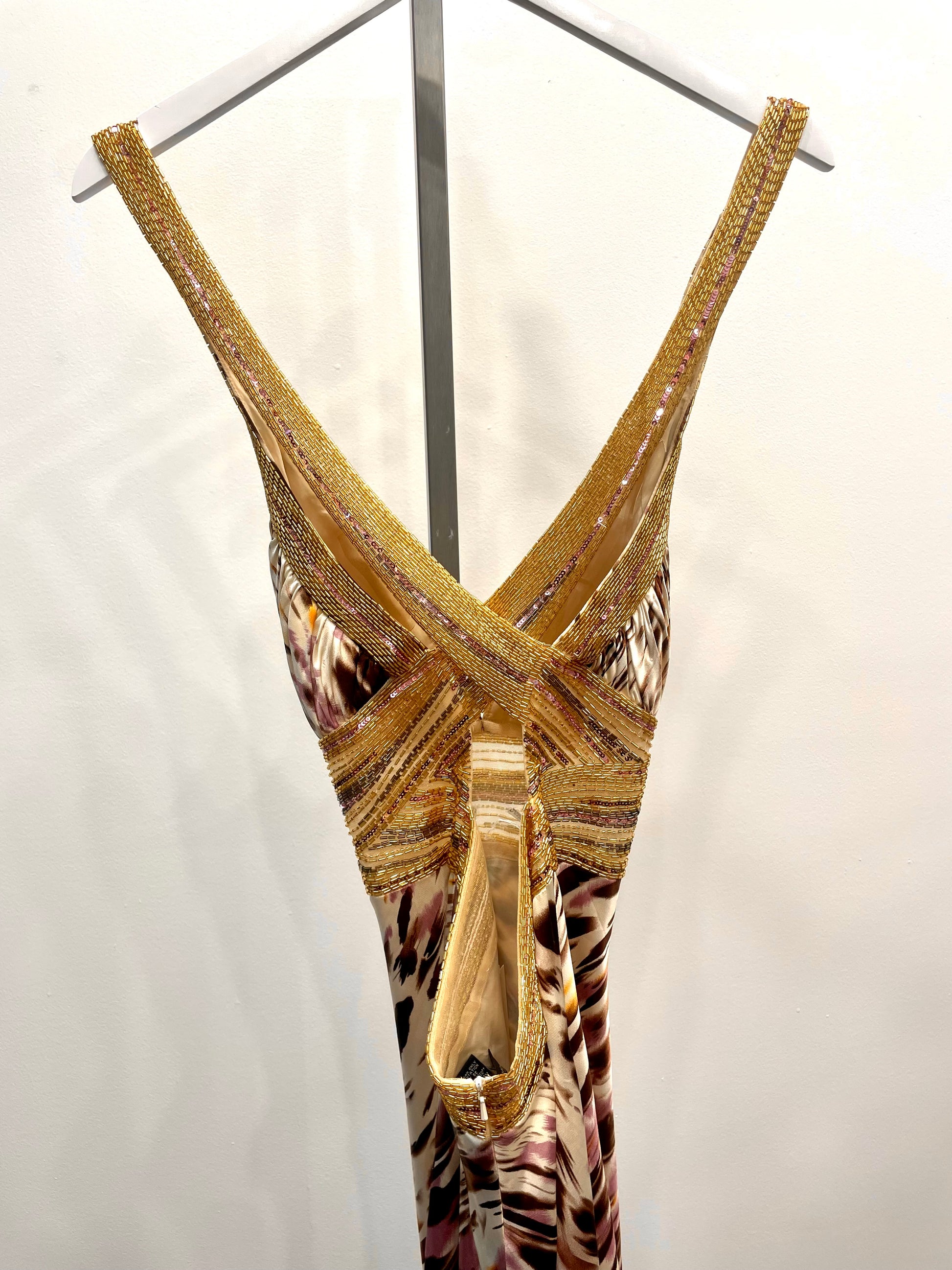 Zebra Print Beaded Gown